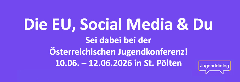 Österreichische Jugendkonferenz 2026: „Die EU, Social Media & Du“. , 10.06. – 12.06.2026.Ort: St. Pölten -> Infos